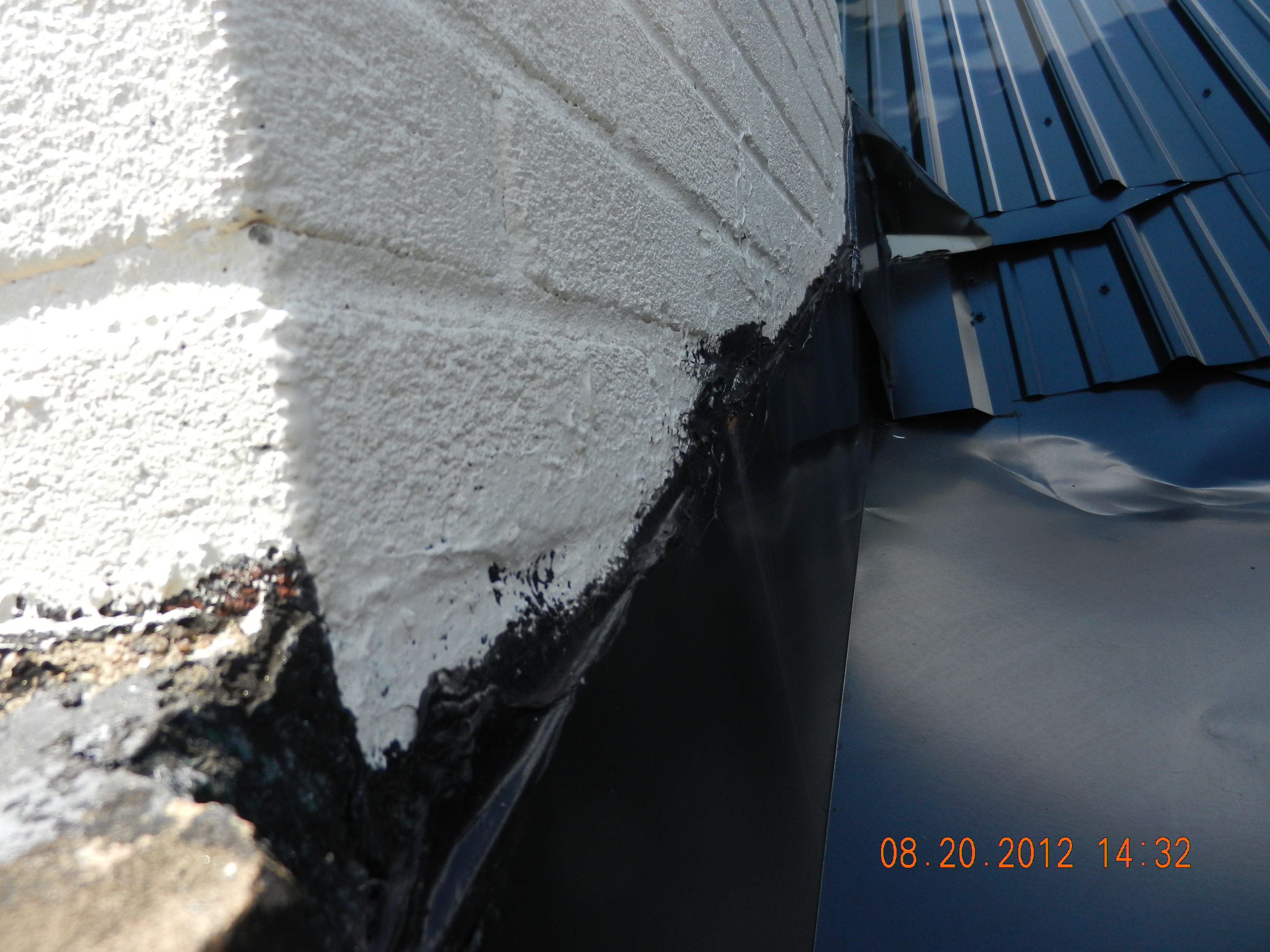 Here is a close up of the flashing. The roofer should have put in a cricket in here to divert the water.