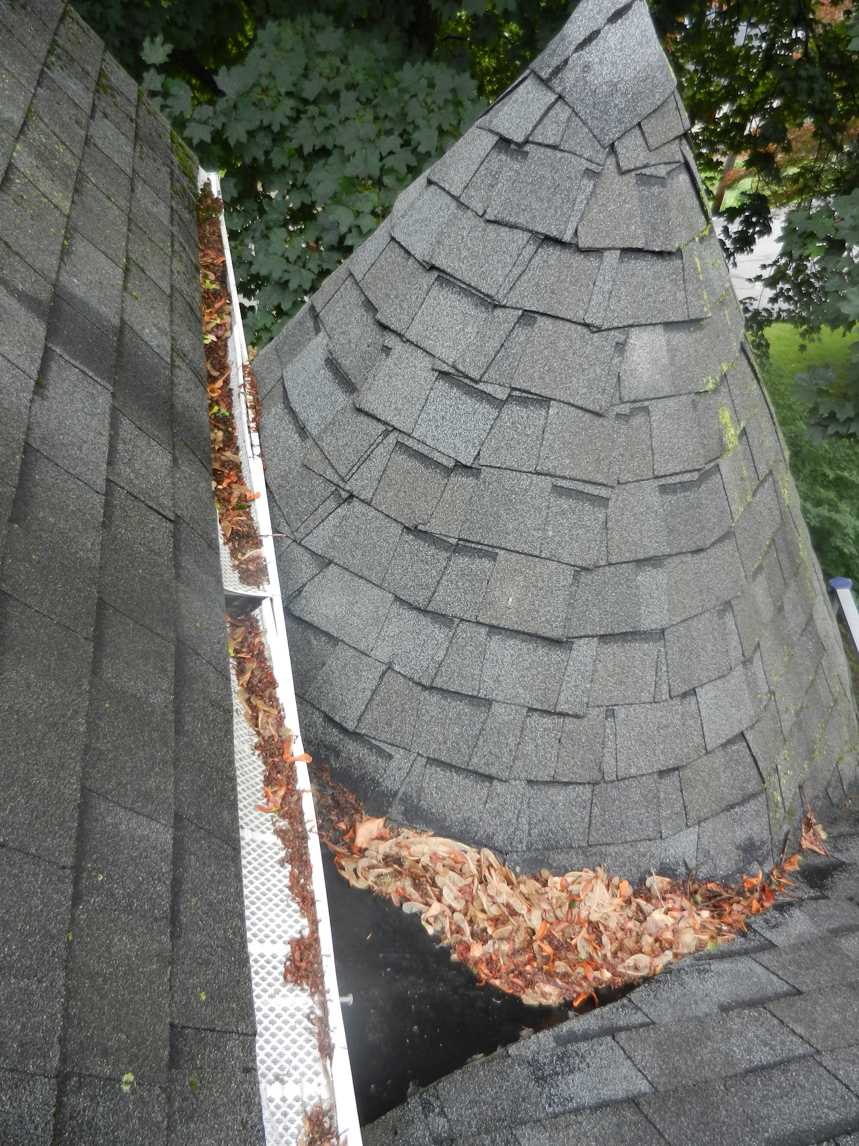 Here’s a cricket. It’s a little dormer for a chimney that’s over 30 inches facing the roof slope.