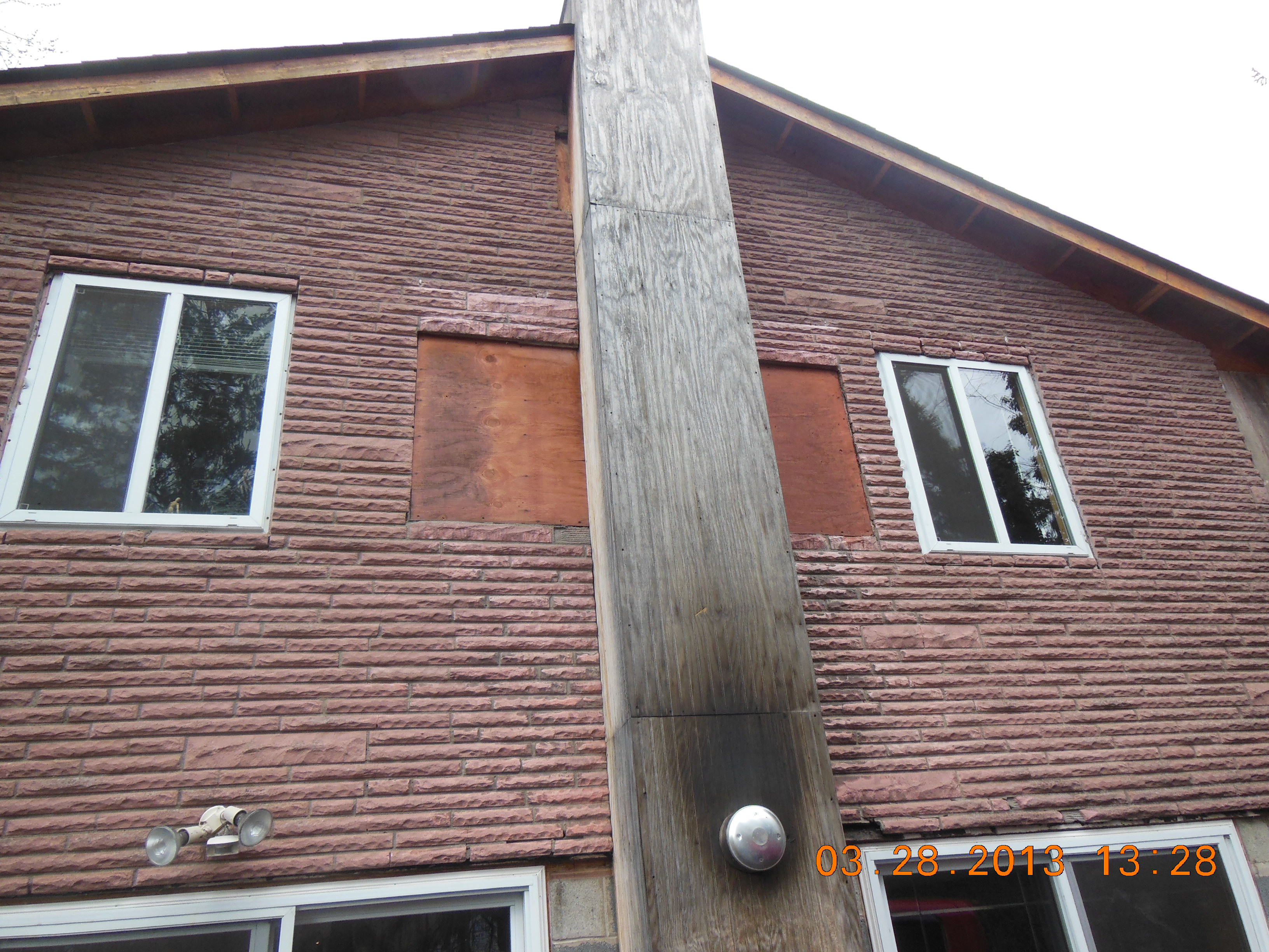 The first thing I noticed arriving at the inspection was the darkening around the vent cap for the pellet stove. A pellet stove can be side-wall vented, if it’s done according to the manufactures instructions.